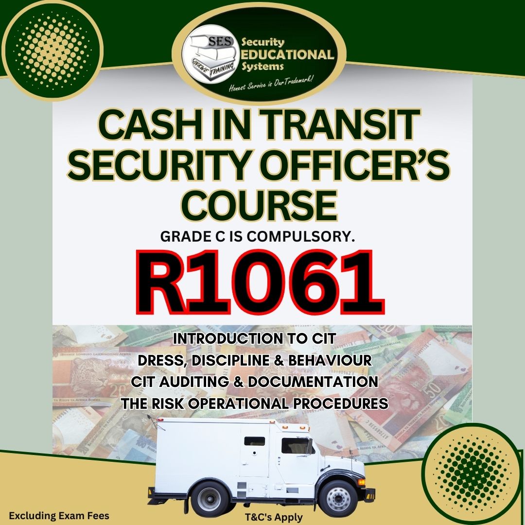 Training Security Officers for the Private Security Industry on different levels (Grades). Patrol Officer, Access Control, Protection of Information Officer, Supervision and more