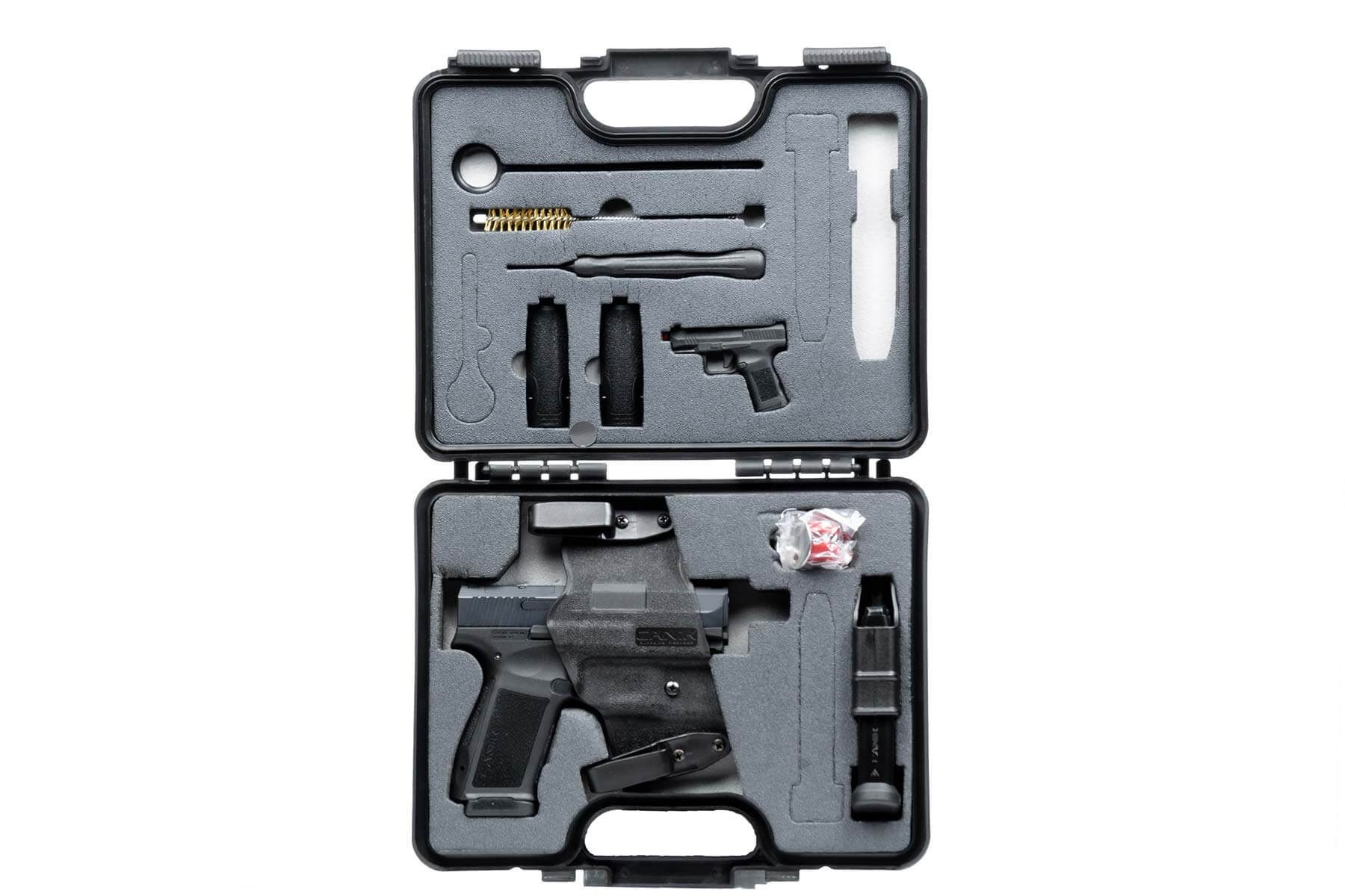 Optics-ready and compatible with popular micro-optics—including the MECANIK MO1—it delivers precision and versatility. Built with a durable polymer frame and nitride-coated steel slide, it’s slim (28.5 mm) and lightweight (630 g), perfect for concealed or open carry.